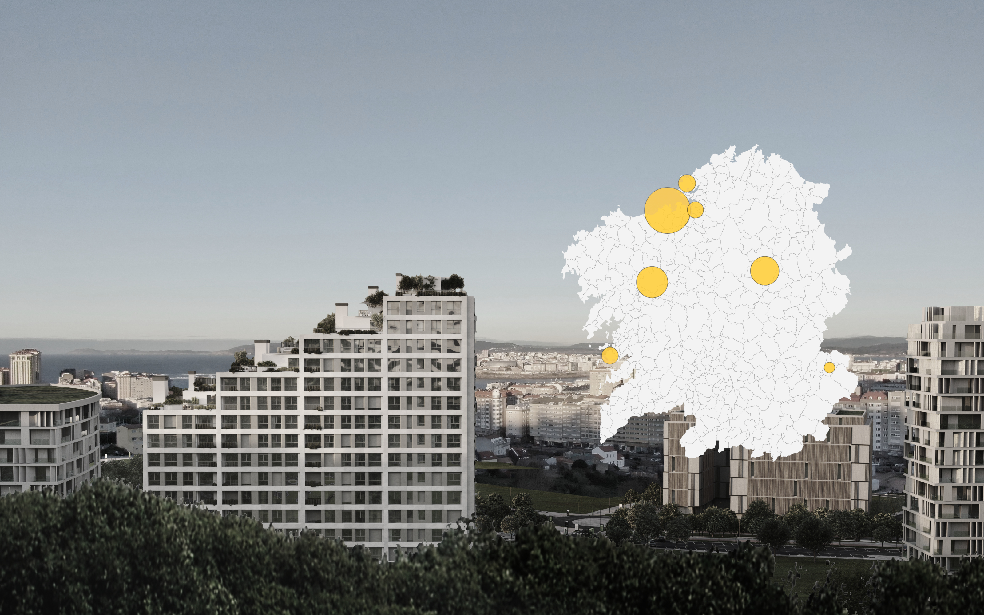 Nos últimos anos está a acelerarse a construción de vivenda nova. En 2025 visáronse 4.839 vivendas de nova planta en Galicia, un 39% máis que o ano anterior. Con todo, a cifra está moi lonxe dos niveis previos á crise da Gran Recesión, cando chegou a superar as 40.000 vivendas novas en 2006 e 2007. Ademais, unha parte significativa concéntrase nuns poucos concellos: o pasado ano o 73% das novas vivendas construídas en Galicia están localizadas en dez cidades e vilas: A Coruña, Pontevedra, Sanxenxo, Vigo, Oleiros, Lugo, Vilagarcía, Ames, Ferrol e Carballo.