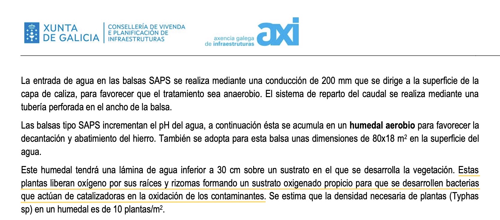 A Xunta aposta polo novo sistema de tratamento "pasivo" con vexetación que 'capture' os contaminantes polo "elevado custo económico" dos sistemas de tratamento "activo" empregados ata agora