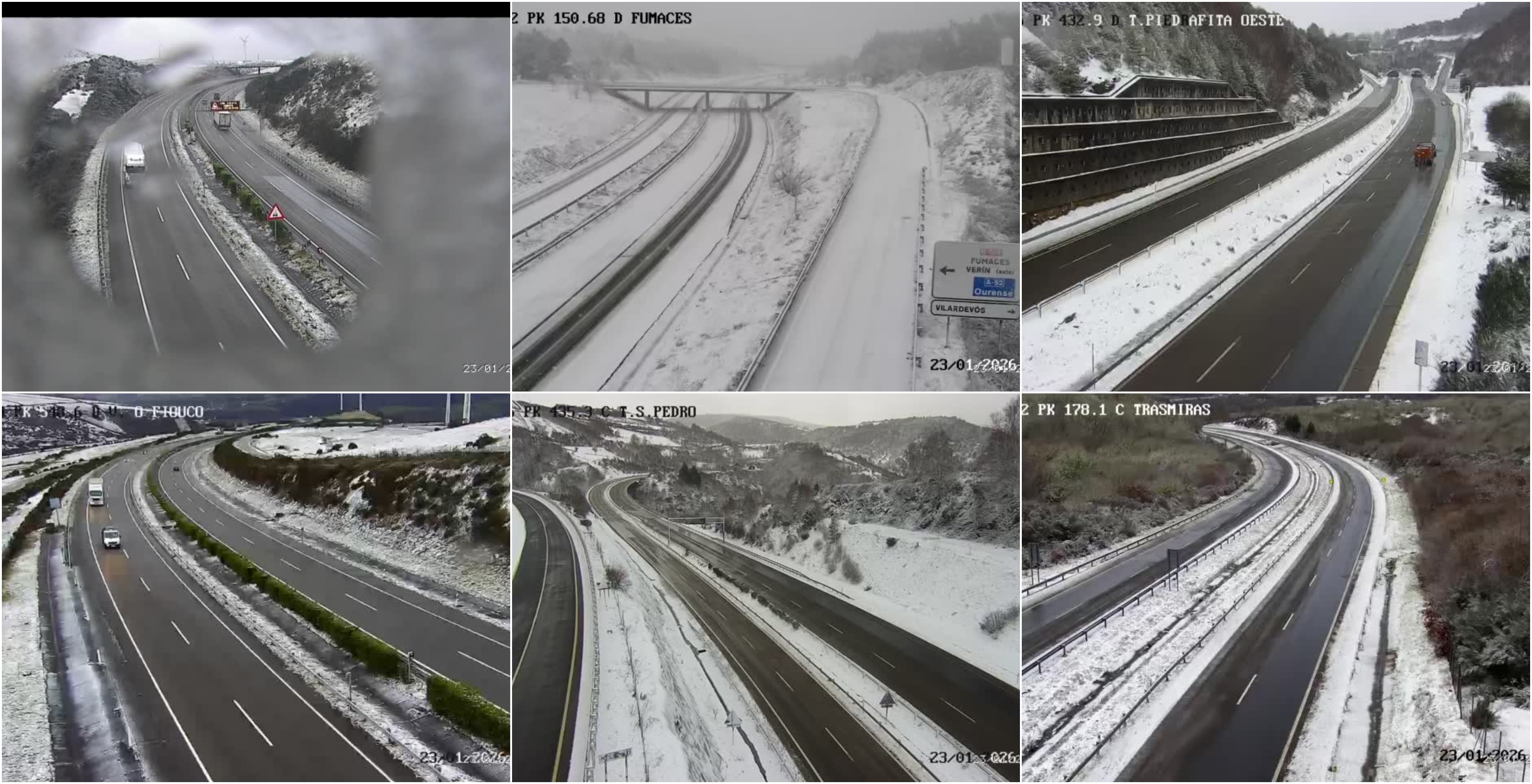 Ao longo da mañá a neve non deixou de caer en boa parte da provincia de Ourense e no centro e sur da provincia de Lugo, especialmente na montaña. Tamén en zonas altas do interior de Pontevedra e da Coruña. As acumulacións e o espesor da neve caída están a provocar problemas na rede viaria e tamén no transporte ferroviario.