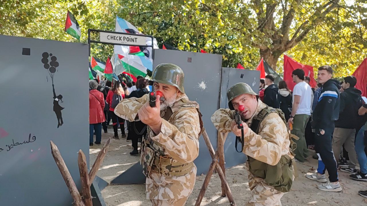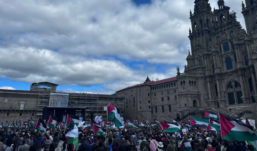 Baixo o lema “Galiza con Palestina. 2 anos de xenocidio, 77 anos de ocupación” milleiros de persoas fixeron da bandeira palestina a propia para clamar “contra a barbarie xenocida de Israel” na Faixa de Gaza. A marcha saíu da Alameda compostelá, convocada pola Coordenadora Galega de Solidariedade con Palestina, apoiada por máis de 150 colectivos sociais galegos, cando se cumpren dous anos da ocupación e masacre en Gaza.