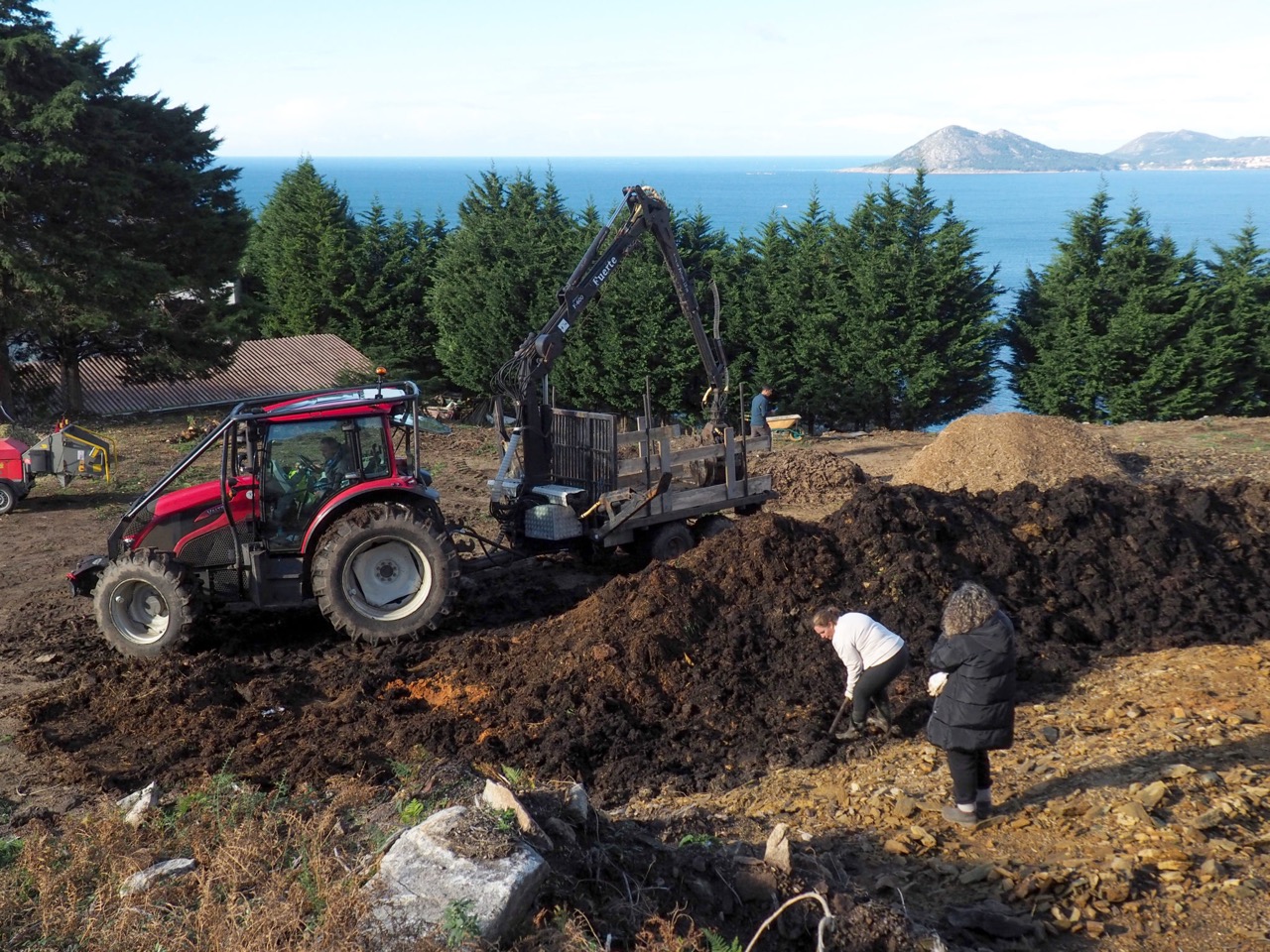 No caso dos residuos, principalmente o que ten que ver coa limpeza das camas das cortes das cabras ou das ovellas, que son as únicas que teñen cabanas, pois o resto de animais están en semiliberdade. En Baroña, onde xa tiñan ovellas, vendían ese esterco. “Agora están facendo un proceso de compostaxe que permite unha maior hixienización do residiu e melloralo incorporando outro tipo de residuos como restos de poda triturados. Ese abono de maior calidade facilitouse a veciños da zona”, conta Claudia de Sas.