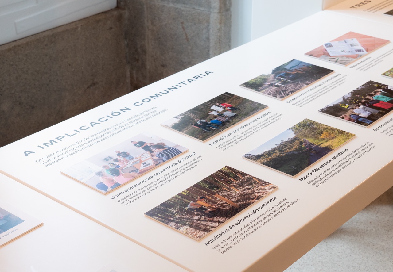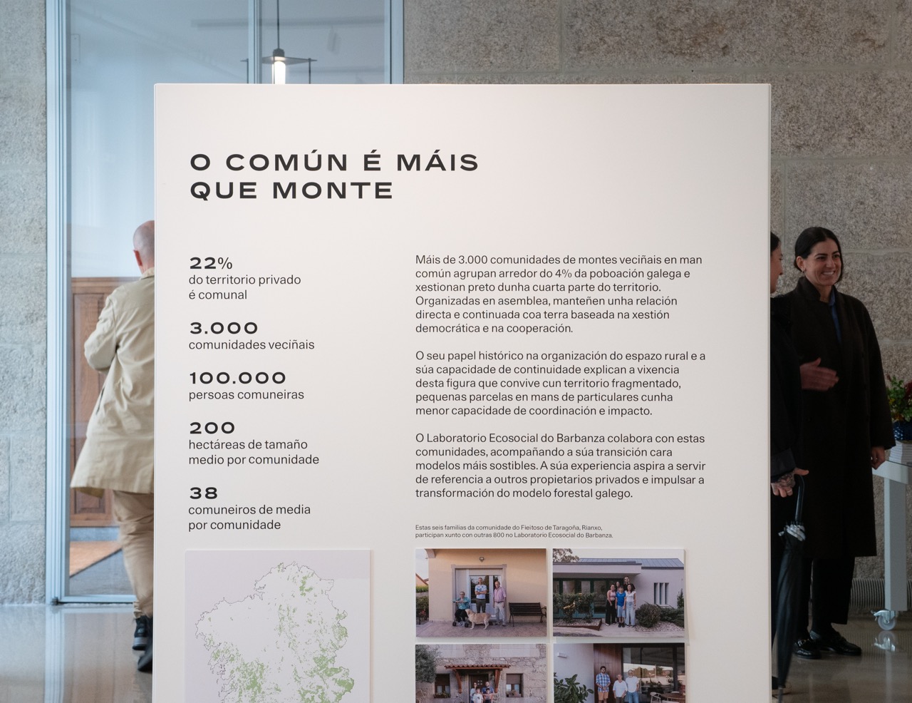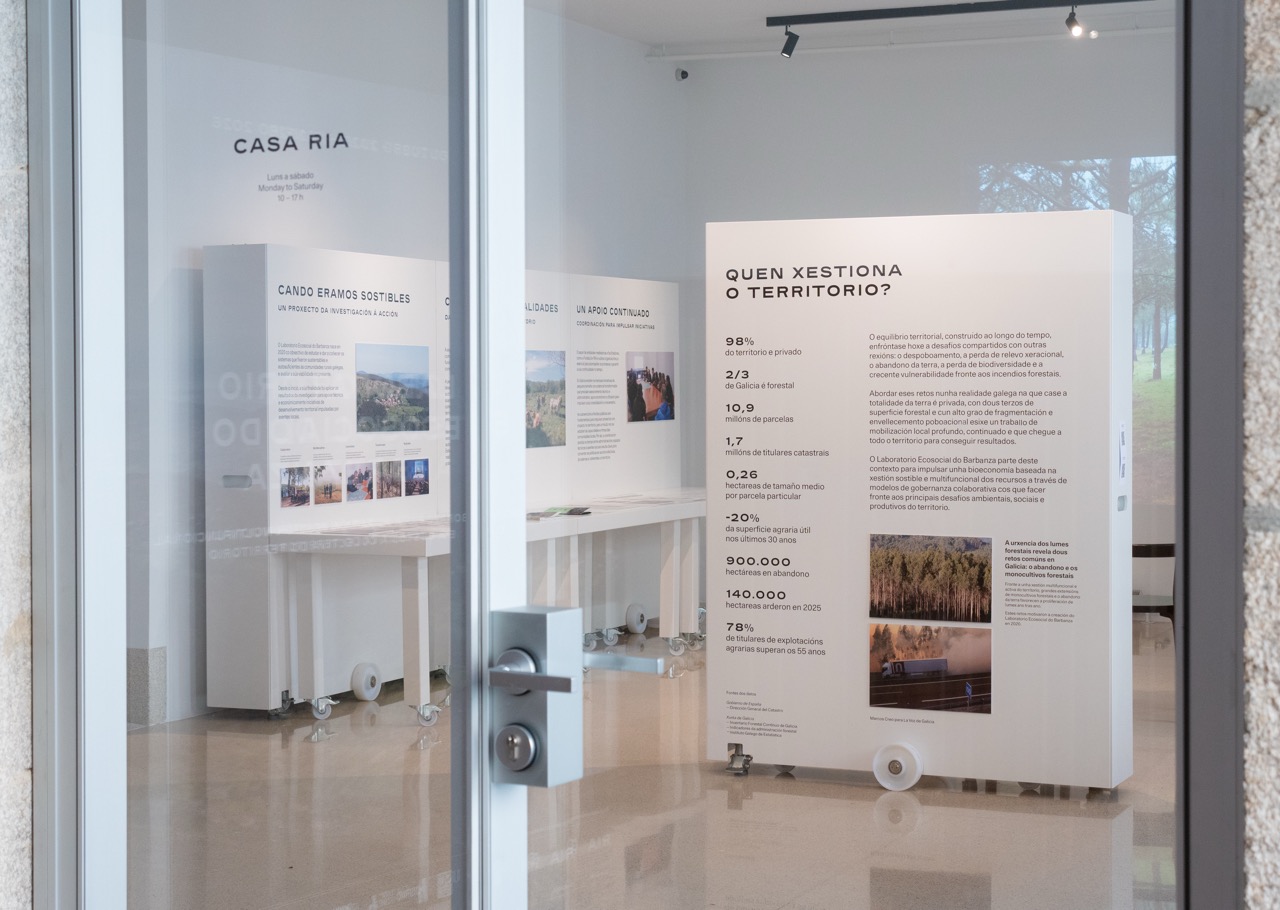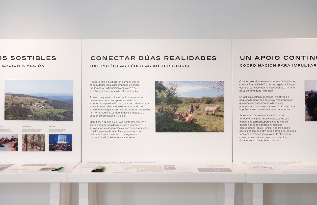 A Fundación RIA promove na súa sede en Compostela, a Casa RIA, unha exposición que percorre os cinco anos de traballo do Laboratorio Ecosocial ata o 24 de xaneiro de 2026 e un programa de mesas de debate sobre temáticas vinculadas ao proxecto, como o uso da madeira de proximidade na construción, o papel das comunidades na transición enerxética (20 de novembro), a gandería rexenerativa como ferramenta económica e ambiental (3 de decembro), a xestión comunitaria do territorio (10 de decembro), iniciativas agroecolóxicas (18 de decembro) e a formación no medio rural (14 de xaneiro).