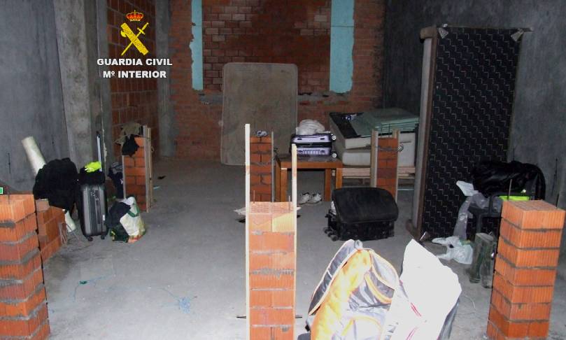 A Garda Civil investiga dúas persoas por delitos contra os traballadores e trata de seres humanos por facelos vivir en "condicións deplorables" na propia obra na que traballaban doce horas ao día