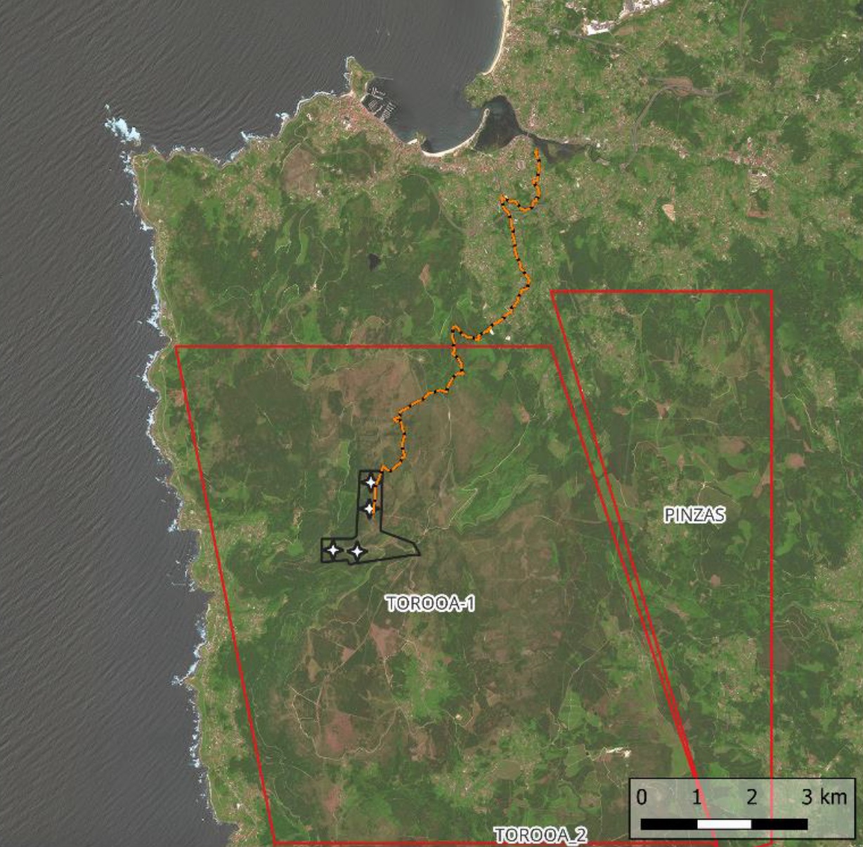 Agora os catro parques eólicos propostos, cos nomes Margarita 18, Cote 25, Nao 19 e Galera 25, contan cun só aeroxerador cada un e estarían dispostos en Oia, arredor do río de Mougás, dous deles a carón do espazo protexido das Sobreiras do Faro, monte comunal declarado hai década e media pola Xunta espazo privado de interese natural.