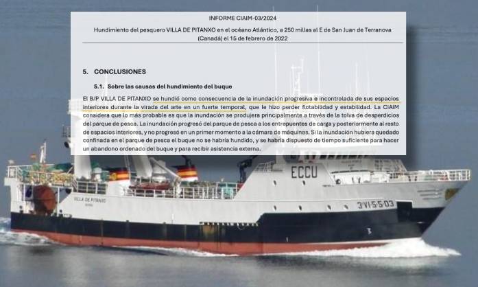 O patrón do Villa de Pitanxo, un dos tres únicos superviventes do afundimento do 15 de febreiro de 2022 en Terranova no que morreron 21 tripulantes, cometeu numerosas imprudencias. Así o vén de establecer a investigación técnica oficial da Comisión de Investigación de Accidentes e Incidentes Marítimos (CIAIM) do Ministerio de Transportes, que tamén constata diversas irregularidades da empresa armadora, Pesquerías Nores Marín. Faino nunha análise técnica [aquí o documento] que se constitúe na principal proba para a causa xudicial penal na que están imputados por presuntos delitos de homicidio por imprudencia grave tanto o patrón como dous directivos da armadora.