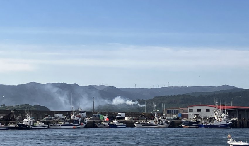 Os cortes de luz e das estradas incrementaron a angusta ante o lume, que cercou o porto de Corme como xa fixera outro lume o sábado