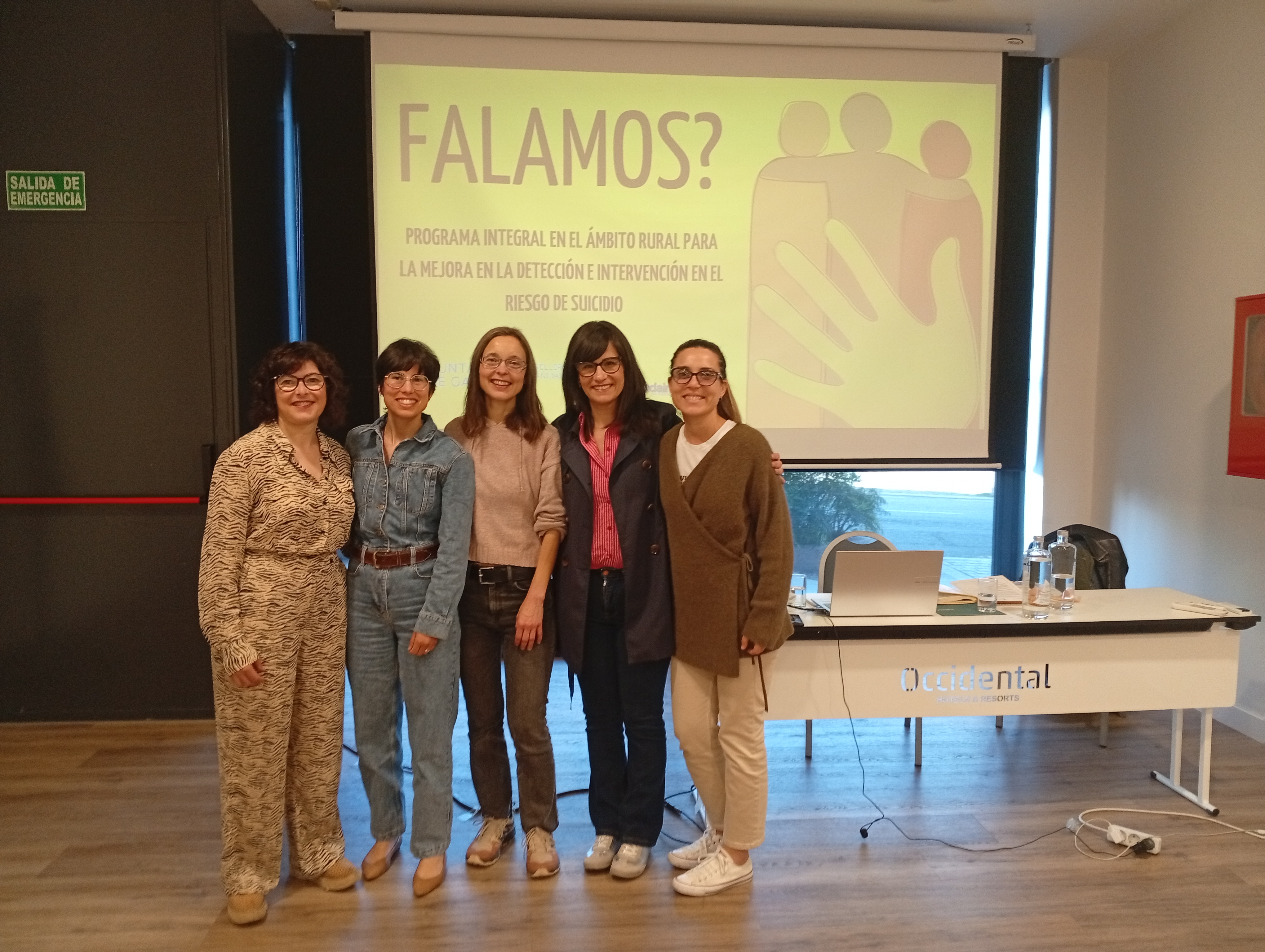 FALAMOS? é un proxecto específico para a detección e intervención en risco de suicidio no ámbito rural, financiado pola Consellería de Sanidade, que está a desenvolver en 2025 múltiples accións en concellos da área sanitaria de Santiago de Compostela e Barbanza. A asociación Andaina Pro Saúde Mental vén impulsando este programa dende 2020 como unha aposta de achegamento a recursos e abordaxe integral da conduta suicida nas zonas rurais.