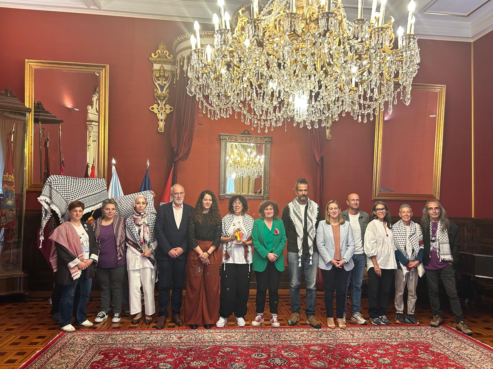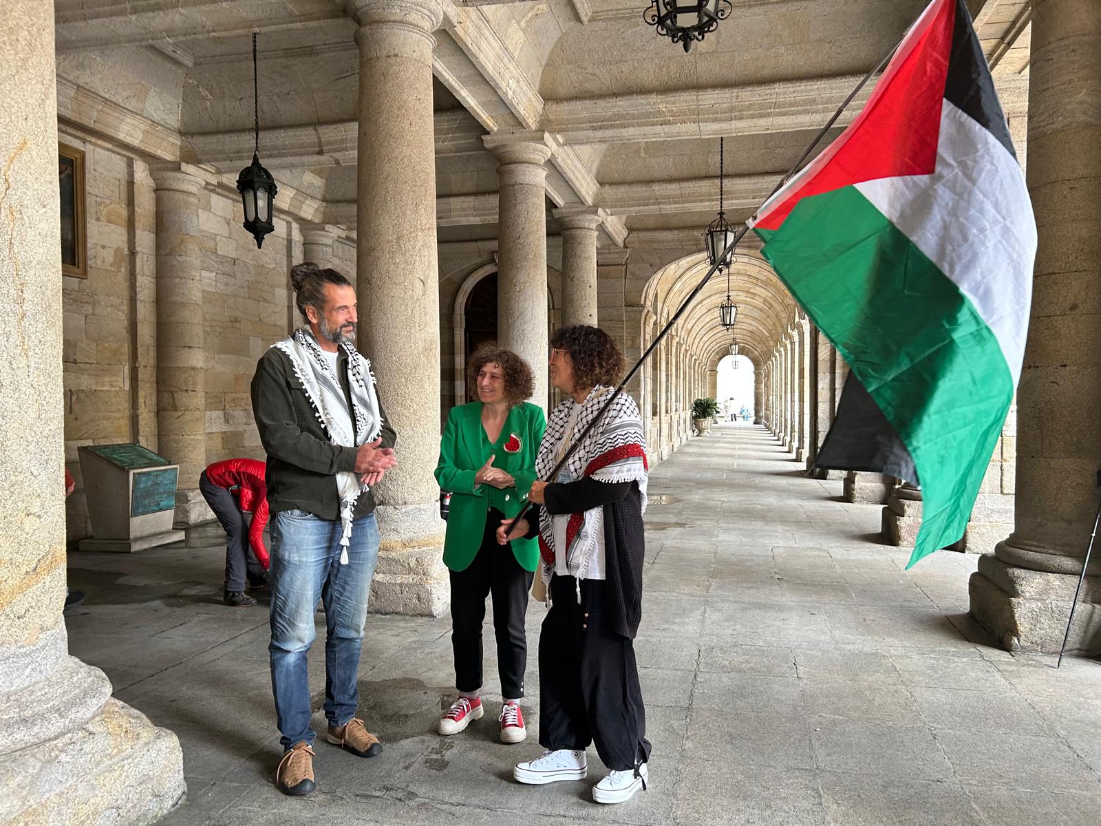 Na recepción participaron xunto coa alcaldesa, a portavoz municipal, Míriam Louzao; a primeira tenenta de alcaldesa, María Rozas; o portavoz, do grupo socialista Sindo Guinarte; e os concelleiros non adscritos Mercedes Rosón e Gonzalo Muíños. Tamén asistiron varios representantes do Movemento Global a Gaza-Galiza.