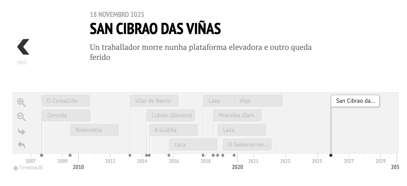 Praza.gal vén recompilando desde hai anos os accidentes laborais mortais rexistrados nas obras de alta velocidade en Galicia, no marco dunha serie de reportaxes sobre os outros custos do AVE máis alá dos económicos.