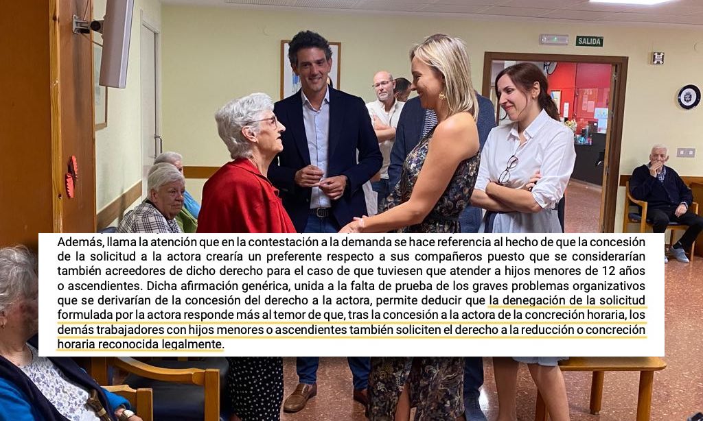 Pero onde pon o foco a sentenza é nos motivos da denegación. Segundo di a xuíza, "chama a atención que na contestación á demanda se fai referencia ao feito de que a concesión da solicitude crearía un preferente [sic] respecto aos seus compañeiros posto que se considerarían tamén acredores de dito dereito para o caso de que tivesen que atender a fillos menores de 12 anos ou ascendentes". Para a maxistrada "dita afirmación xenérica, unida á falta de proba dos graves problemas organizativos que se derivarían da concesión do dereito [á traballadora], permite deducir que a denegación da solicitude formulada responde máis ao temor de que, tras a concesión da concreción horaria, os demais traballadores con fillos menores ou ascendentes tamén soliciten o dereito á redución ou concreción horaria recoñecida legalmente".