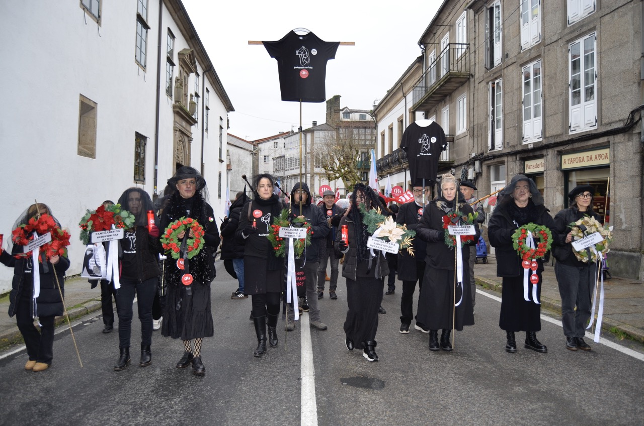 "Malia todos os intentos de dividirnos, de desgastarnos e de culpabilizarnos co tema das avaliacións estamos aquí en pé, por moito que lle pese á Consellería", aseguraron no manifesto final da 'marcha fúnebre', na que portaron cadaleitos, candeas, esquelas e outra simboloxía mortuoria; ademais de contar con cabezudos do presidente Alfonso Rueda e do conselleiro responsable, Román Rodríguez.