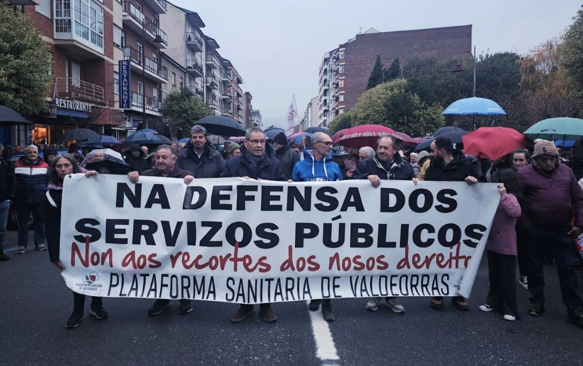 Na defensa dos servizo públicos. Non aos recortes dous nosos dereitos podíase ler na pancarta que encabezaba a marcha, convocada pola Plataforma Sanitaria de Valdeorras que que contou, entre outros, coa presenza da portavoz nacional de BNG, Ana Pontón, e da secretaria de Organización do PSdeG, Lara Méndez.