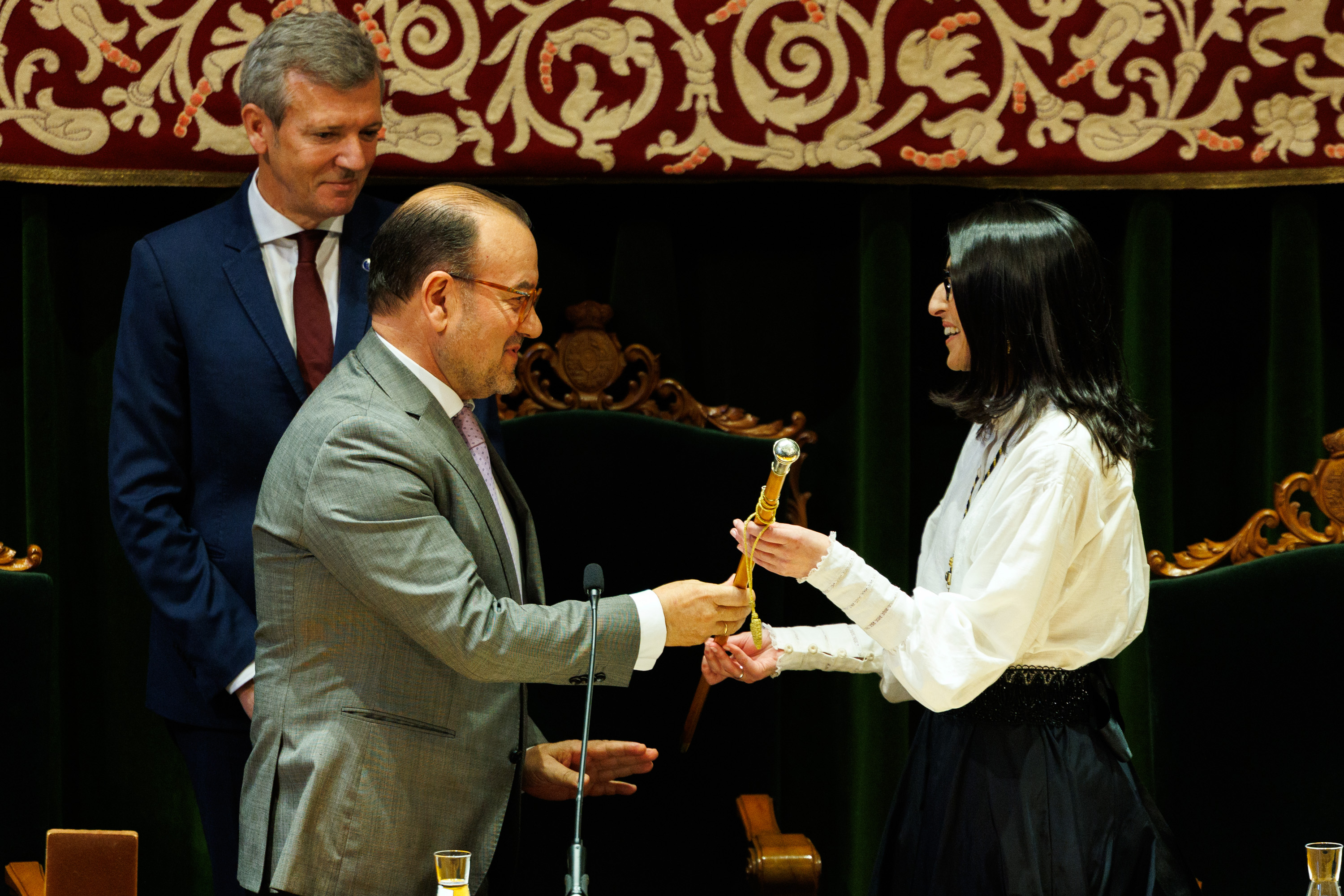 Este venres tomaron ademais posesión do seu cargo Alicia Villalba Sánchez como secretaria xeral; Roberto Bande Ramudo como vicerreitor de Coordinación do Campus de Lugo; Almudena Hospido Quintana como vicerreitora de Investigación e Ciencia Aberta; Pablo Taboada Antelo como vicerreitor de Profesorado e Innovación Docente; Pablo Durán Santomil como vicerreitor de Economía, Infraestruturas e Sostibilidade; María Reyes Laguna Francia como vicerreitora de Ordenación Académica e Oferta Formativa; Marcelino Maneiro Maneiro como vicerreitor de Innovación e Transferencia do Coñecemento; Lorena Añón Loureiro como vicerreitora de Estudantado, Igualdade, Diversidade e Benestar; e Ana Cabana Iglesia como vicerreitora de Cultura, Lingua e Patrimonio.