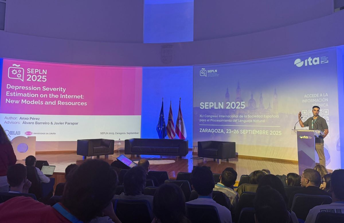 Porque a tese é só o principio dun proceso, un traballo do que Pérez Vila xa publicou os resultados en congresos internacionais de referencia como ECIR, SIGIR ou EMNLP, así como en revistas como Artificial Intelligence in Medicine (AIM). Logo chegou o premio da SEPLN, que non só destacou a orixinalidade e rigor metodolóxico da investigación, senón, e sobre todo, o seu impacto potencial na mellora da saúde mental e do benestar social.