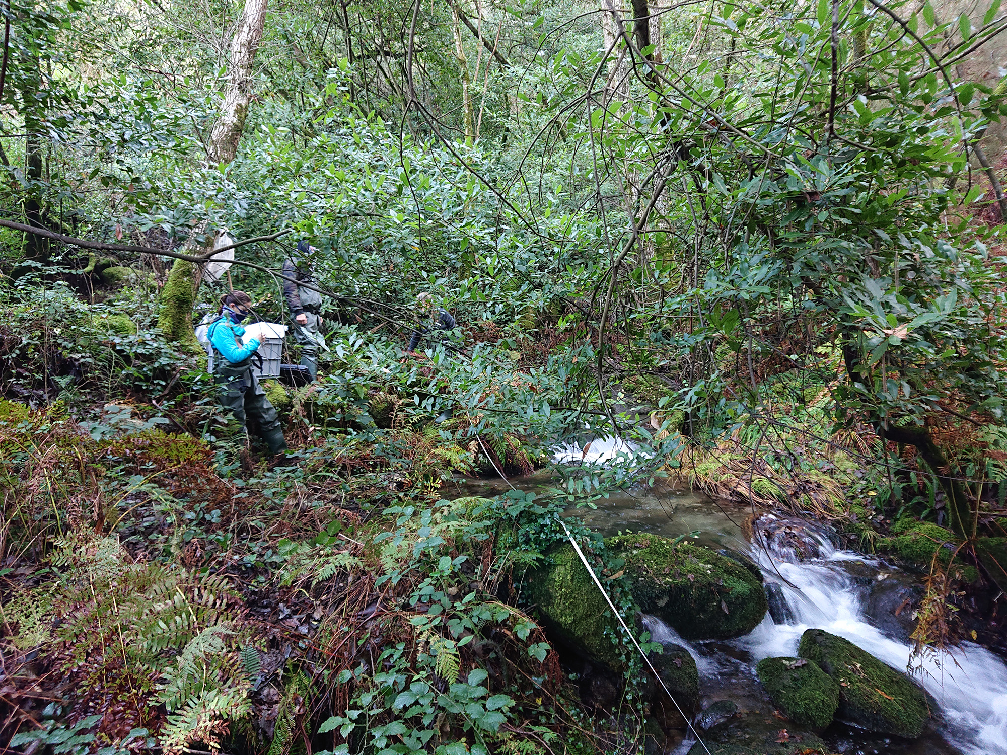 As restricións de mobilidade levaron a mudalos por uns traballos de campo levados a cabo en dez municipios da provincia de Pontevedra, escollendo regatos que discorresen principalmente a través de plantacións de Eucalyptus globulus e outros bordeados por “bosques caducifolios nativos”, nos que as especies máis abondosas eran o carballo, o castiñeiro e o ameneiro.