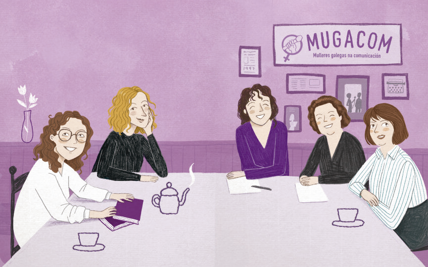 Os fíos de Begoña é un álbum ilustrado que Eva Mejuto levou a cabo xunto a Nuria Díaz, creadora das ilustracións. “Levo case trinta anos traballando no mundo do álbum ilustrado e encántame traballar á par coas ilustradoras. Propúxenlle a Nuria o tema dos fíos pola lenda xaponesa do fío vermello que nos acompaña na vida, que está presente en moitas mitoloxías, tamén nas clásicas. É moi bonito porque ten que ver con tecer e construír, que é algo moi de Penélope e moi do feminismo; que no caso de Begoña tiña esa metáfora engadida de tecer redes para o feminismo. Hai un fío que acompaña todo o libro, que quedou magnífico coas ilustracións de Nuria, que aportou a súa propia lectura de Begoña ao representala”, destaca Mejuto, que ao igual que Maceda, celebra o carácter coral do desenvolvemento do libro.