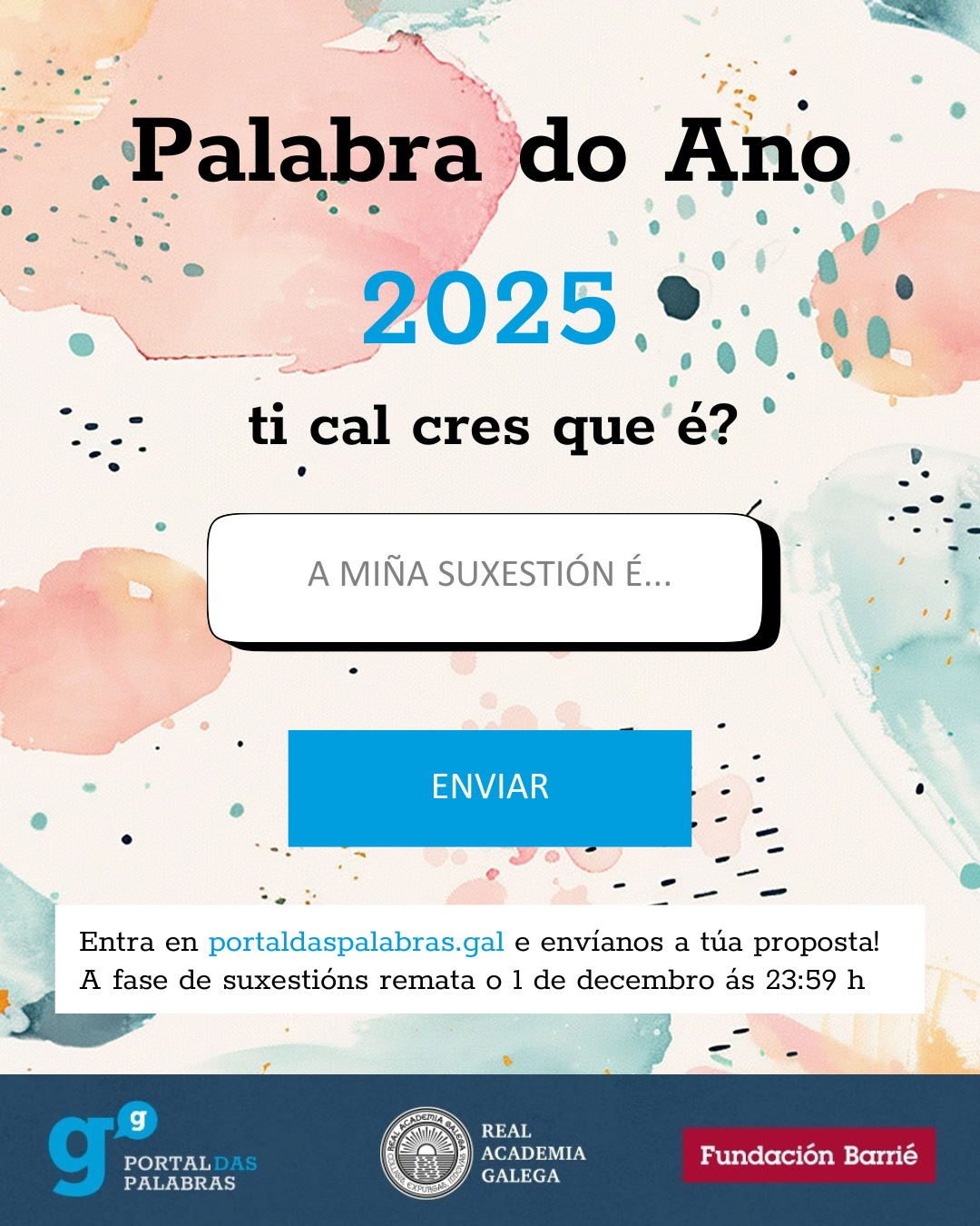 A escollida será a palabra de 2025 e tamén quedará plasmada na rúa Menorca da capital lucense, onde o Concello vén gravando cada un dos termos escollidos no seu Paseo das Palabras do Ano. A iniciativa, eloxia o tenente da Alcaldía lucense, Rubén Arroxo, "ten importancia especial na posta en valor da nosa lingua, un dos símbolos máis importantes de Galiza" e por iso o consistorio decidiu construír "o gran paseo das palabras do ano", unha "intervención artística" que, coida tamén é xa un "atractivo turístico".