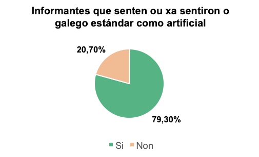 Un 79,3 por cento de galegofalantes e un 71,4 por cento de falantes de brasileiro afirmaron que teñen ou xa tiveran a impresión de que a norma do seu idioma é artificial