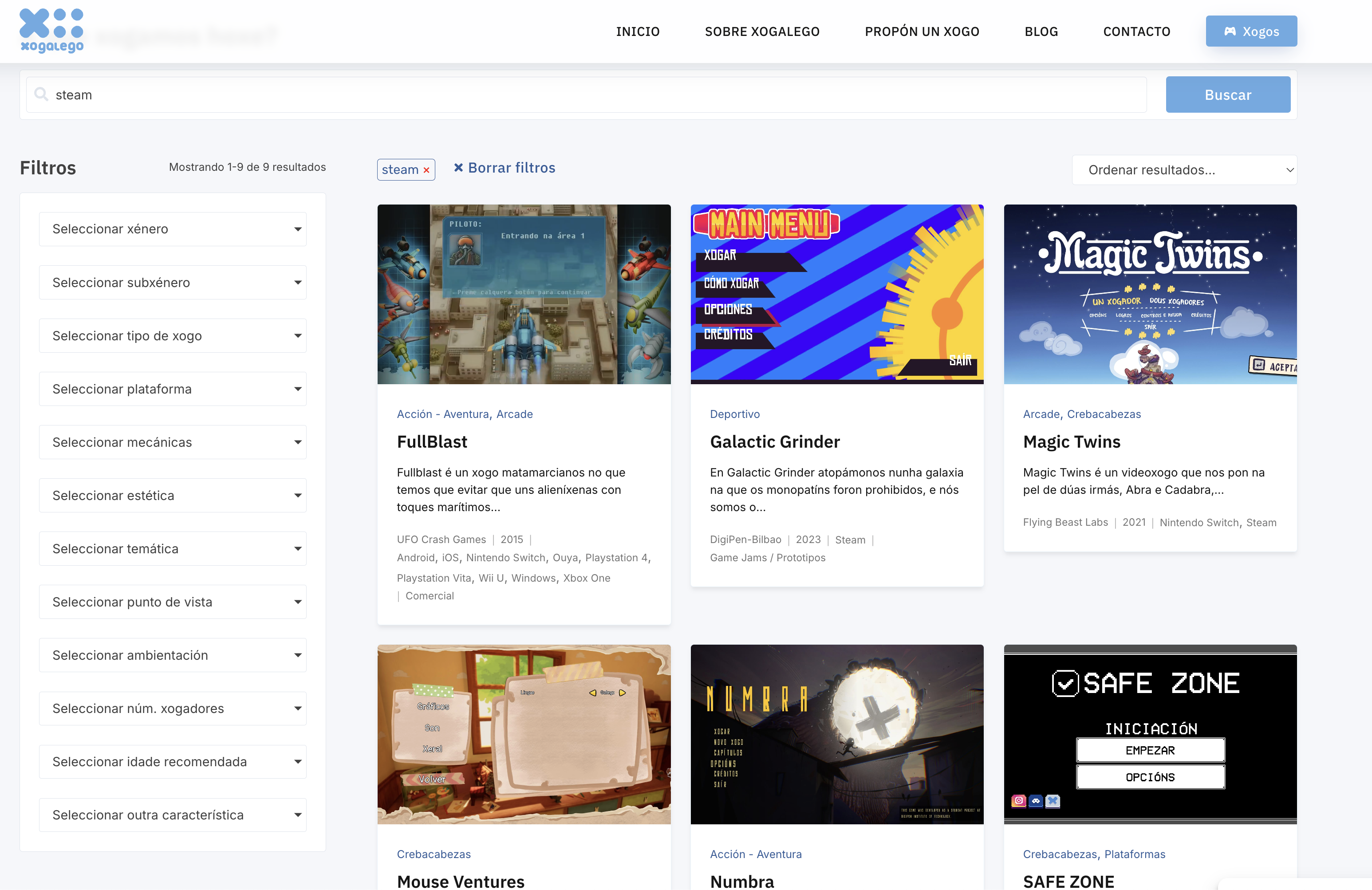 Queres atopar videoxogos en galego pero non sabes onde buscalos? Queres estar ao tanto das últimas novidades que contan con versións na lingua propia do país? Vén de nacer Xogalego, un catálogo en liña de videoxogos en galego pensado para superar as dificultades que ofrecen as distintas tendas e plataformas dixitais de videoxogos, como Steam ou as tendas de Sony, Nintendo ou Microsoft, á hora de intentar xogar no noso idioma.
