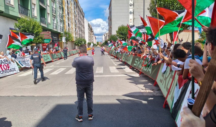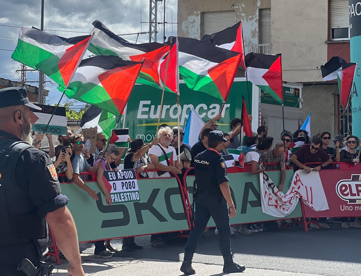 As protestas contra a participación do equipo Israel-Premier Tech na Vuelta continúan tamén noutros puntos do Estado. A situación, que levou á dirección da Vuelta a España, a equipos e a ciclistas a pedir publicamente ao equipo israelí a súa retirada da carreira para garantir o seu desenvolvemento sen incidentes, obrigou tamén ao Premier Tech a modificar o maillot que visten os seus corredores para que non se lea nel a palabra Israel.