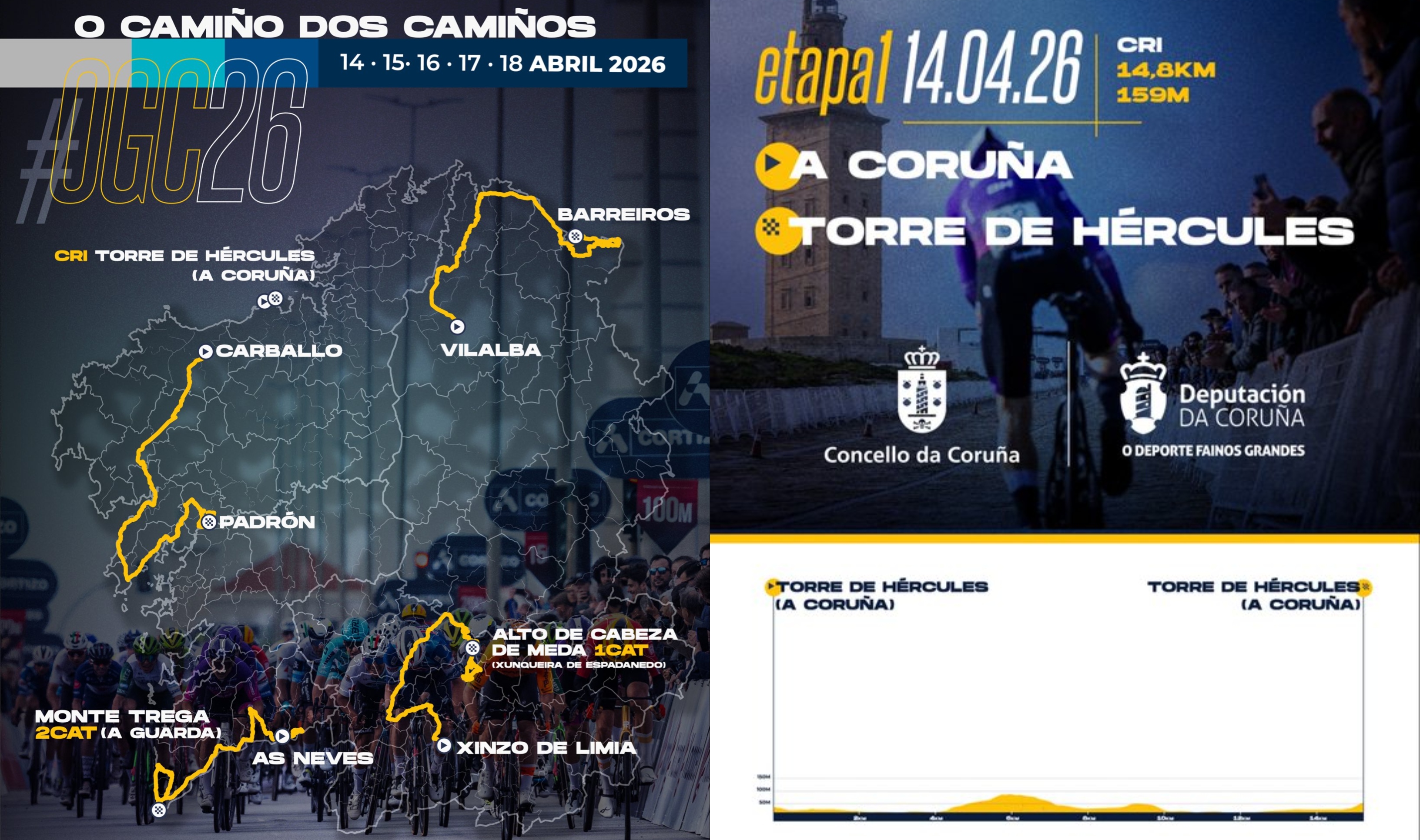 O mellor ciclismo do mundo volve a Galicia. Xa se coñece o percorrido completo da quinta edición de O Gran Camiño, unha proba que regresa coa importante novidade do seu cambio de datas, pois pasa de celebrarse en febreiro, como sucedeu nos catro últimos anos, a facelo en abril, do 14 ao 18. E que mantén o seu deseño de cinco etapas, pero desta volta todas en territorio galego, despois da incursión en Portugal do ano 2025. Mantén, igualmente, a categoría 2.1 (a terceira para unha proba por etapas), ficando a posibilidade dun ascenso á segunda cateogría (2.Pro) para outra ocasión.