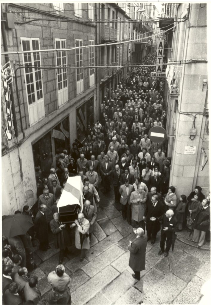 O enterro de Otero Pedrayo, tras a súa morte o 10 de abril de 1976, congregou milleiros de persoas nas rúas de Ourense, onde foi soterrado no cemiterio de San Francisco cun hábito de franciscano e a bandeira de Galicia, como era o seu desexo.