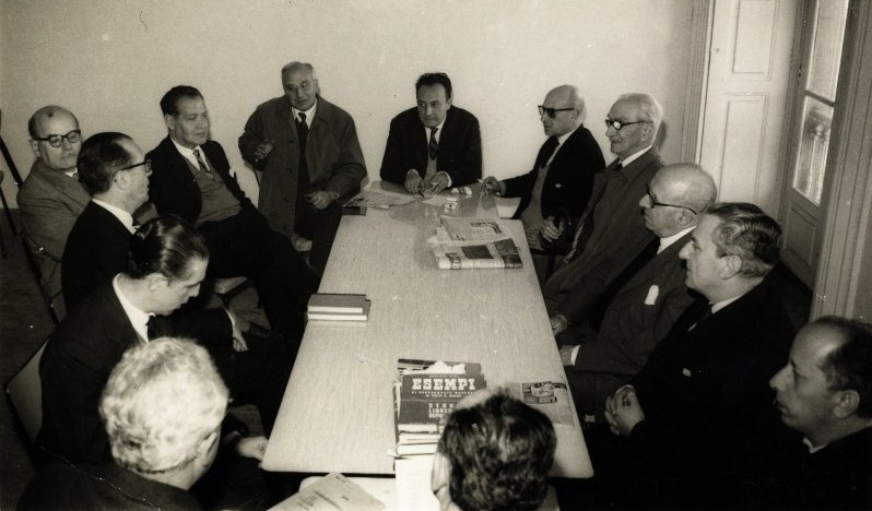 Otero Pedrayo foi o primeiro e máis duradeiro presidente da Editorial Galaxia, durante máis de 25 anos, desde a súa fundación o 25 de xullo de 1950 ata o seu falecemento en 1976. Na imaxe, un Consello de Administración da editorial contra 1960.
