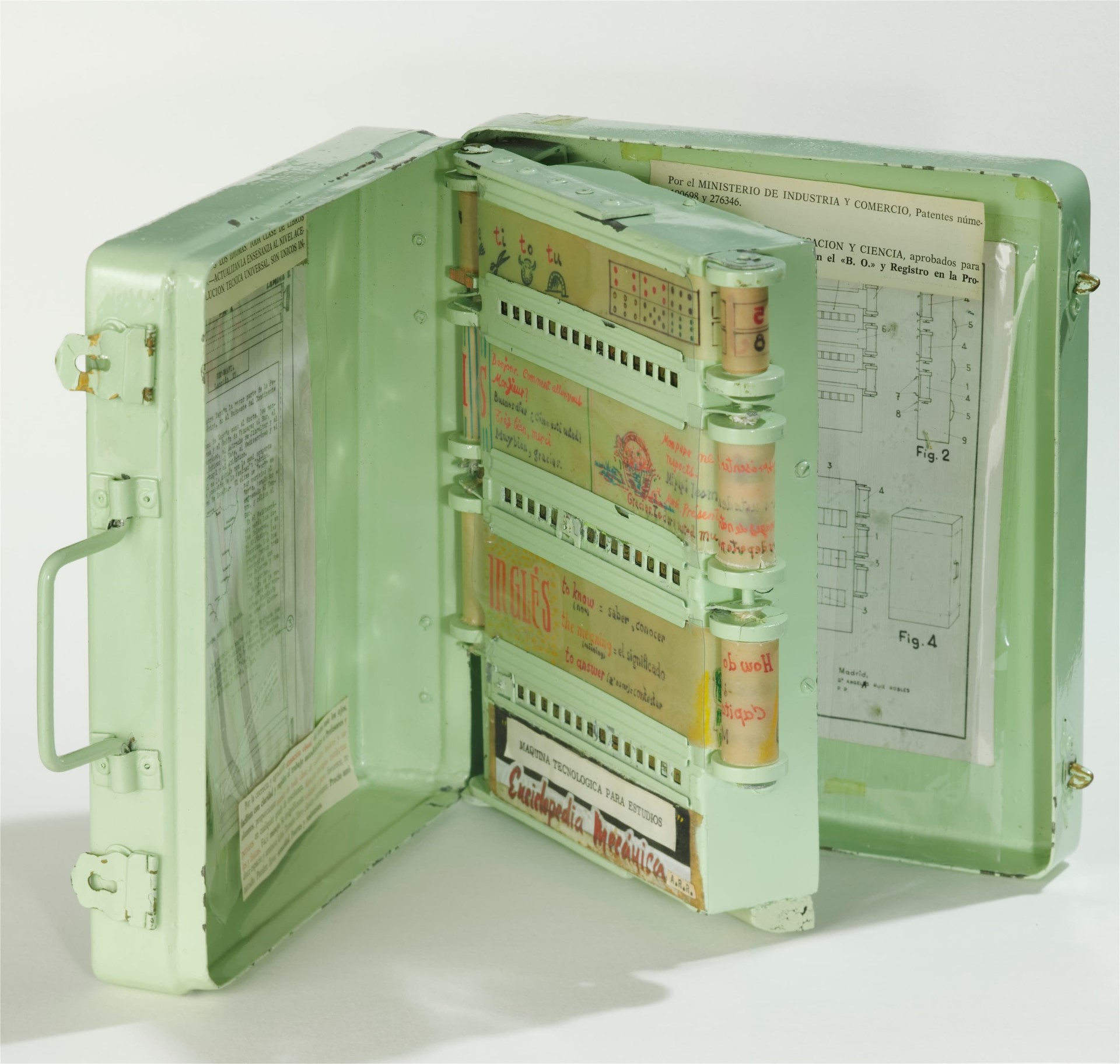 En 1962, Ángela Ruíz Robles (Villamanín, León, 1895 - Ferrol, 1975), mestra dende os anos 20, inventou “un aparato para lecturas y ejercicios diversos”, unha enciclopedia mecánica que ben pode considerarse un precursor do e-book ou, en todo caso, un invento prodixioso e moi adiantado ao seu tempo.