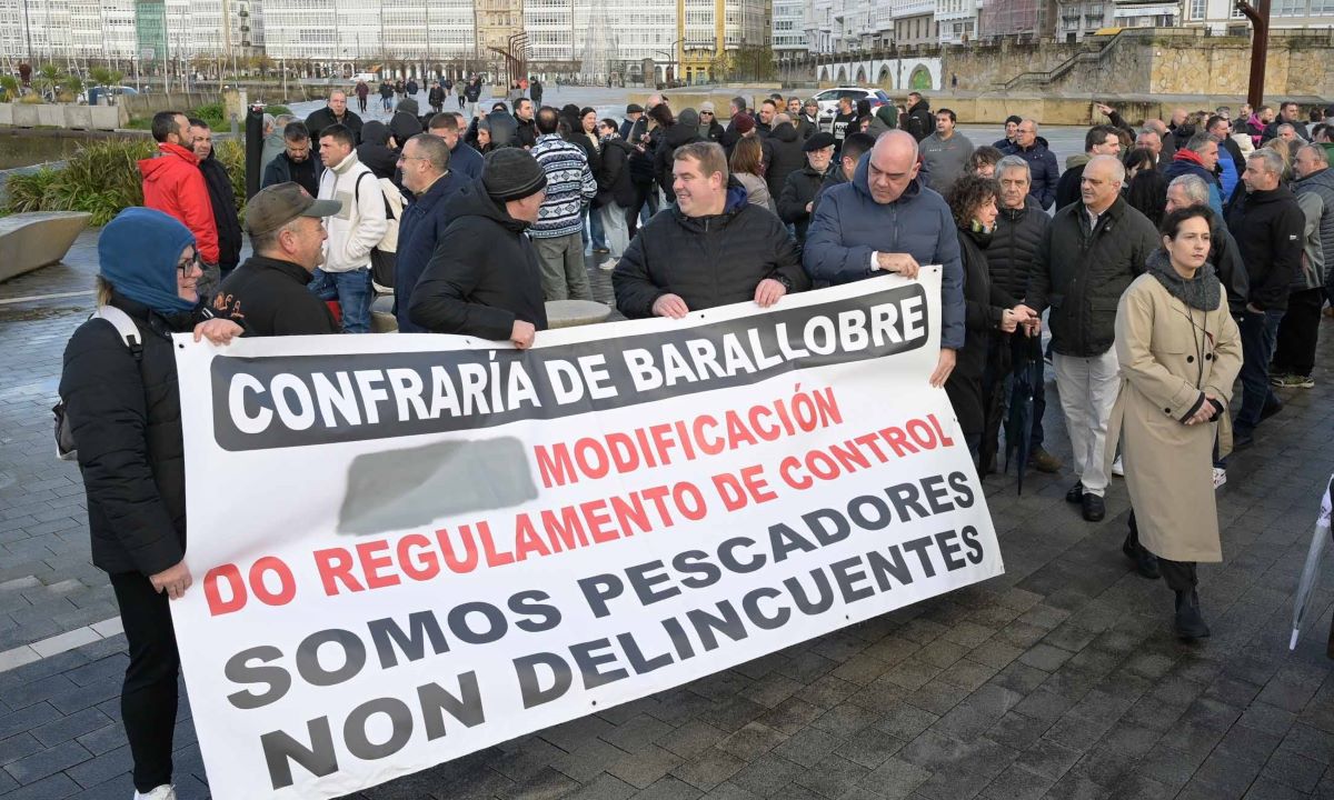 Coas bucinas soando simultaneamente e as lonxas pechadas, a frota de baixura deixou claro o seu rexeitamento a unha normativa que cren que pretendía aplicar a embarcacións pequenas condicións "imposibles de cumprir" para as pequenas e que convertían os barcos en "oficinas andantes", como explicou o patrón maior da confraría de Ferrol, Gustavo Chacartegui. ""Non nos negamos ao control, pero un control lóxico", dixo.