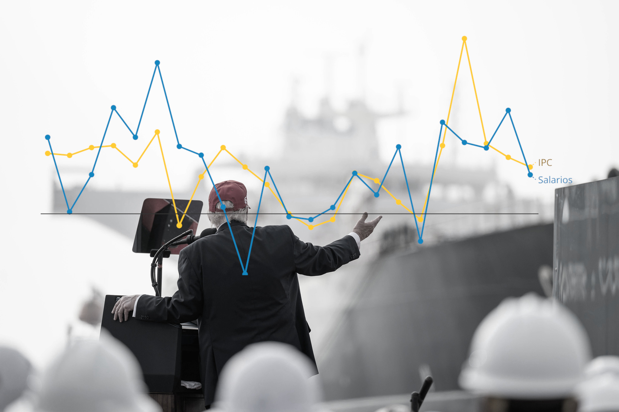 A crise de prezos só foi compensada en parte por unha suba dos salarios, que en 2022 medraron moi por debaixo da inflación e que, aínda que en 2024 si aumentaron máis que os prezos, levaron a unha perda do poder adquisitivo dunha parte moi importante da poboación. Nos últimos catro anos os salarios medraron por debaixo dos prezos a pesar de aumentos medios dos soldos de ao redor do 4% en 2022 e 2023 e do 5% en 2024, que os datos dos que dispoñemos en 2025 -aínda moi incompletos- reducen de forma considerable.
