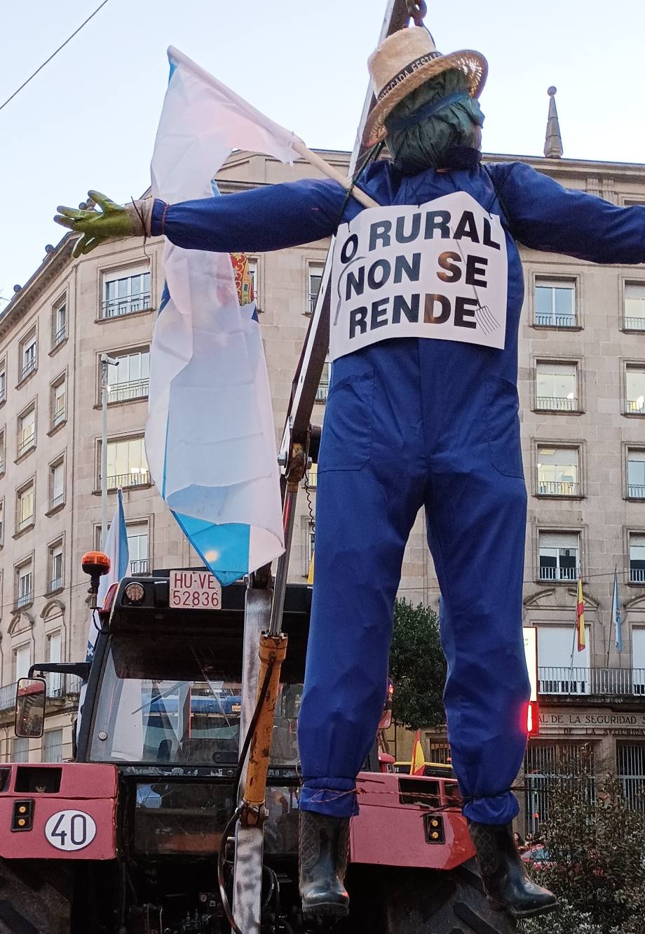 A protesta de produtores agrogandeiros en forma de tractorada que dende o pasado luns 29 de decembro ocupa varias rúas do centro da cidade de Ourense elevou este martes e mércores a súa intensidade. A mobilización impulsada pola Asociación do Sector Primario de Galicia, que denuncia o acordo de libre comercio entre UE e Mercosur, bloqueou a porta principal da Subdelegación do Goberno central, colocando na entrada varias pacas da palla, ademais dun dos tractores. A pesar de que a Policía lles indicou que debían retirar o bloqueo, non o fixeron.