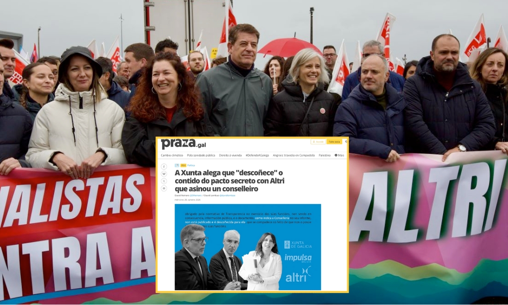 "A gravidade das informacións coñecidas obriga ao máximo responsable do Executivo galego a dar a cara e explicar que sabía, cando o soubo e que consecuencias pode ter este pacto para Galicia", di o PSdeG. Besteiro considera "extremadamente grave" que "un conselleiro puido asinar un acordo de enorme transcendencia económica, territorial e ambiental sen control político nin transparencia pública". "Non é crible que a Xunta non saiba que compromisos se asumiron en nome de Galicia. Se non o sabe, o problema é gravísimo. E se o sabe e non o explica, tamén", considera o líder socialista.