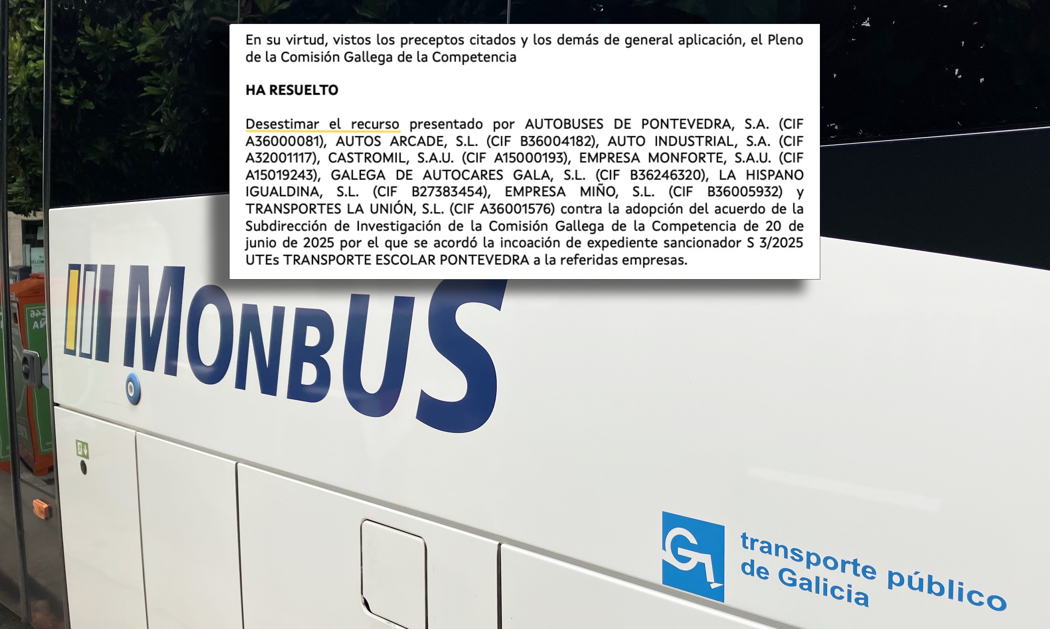 Monbus, unha das principais adxudicatarias, presentou recurso contra o inicio dese expediente argumentando, entre outras cuestións, que o caso xa fora desbotado polo Tribunal Superior de Xustiza de Galicia (TSXG). Pero agora Competencia vén de rexeitar ese recurso de Monbus e di que ese argumento será valorado no "axuizamento da resolución final do expediente sancionador". Monbus, pola súa banda, seguirá mantendo durante a tramitación do expediente a súa "firme defensa da ausencia de calquera irregularidade".