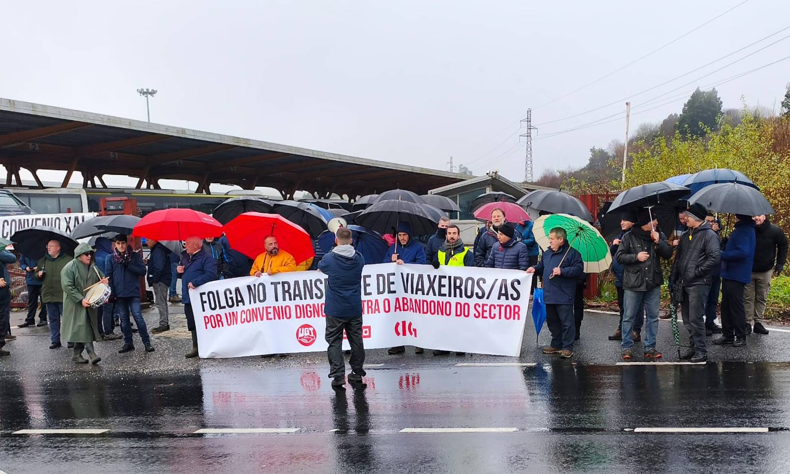 Este venres os piquetes informativos non se limitaron a bloquear as cocheiras das grandes empresas ou concesionarias senón que tamén se desprazaron a empresas de menor tamaño para tentar que a folga teña maior repercusión tamén no transporte escolar.