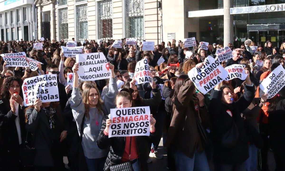 Os sindicatos mobilizados advirten de que o novo convenio estatal suporía perder entre 2.000 e 3.000 euros ao ano, elimina a antigüidade, reduce as licenzas e suprime a voluntariedade nos festivos