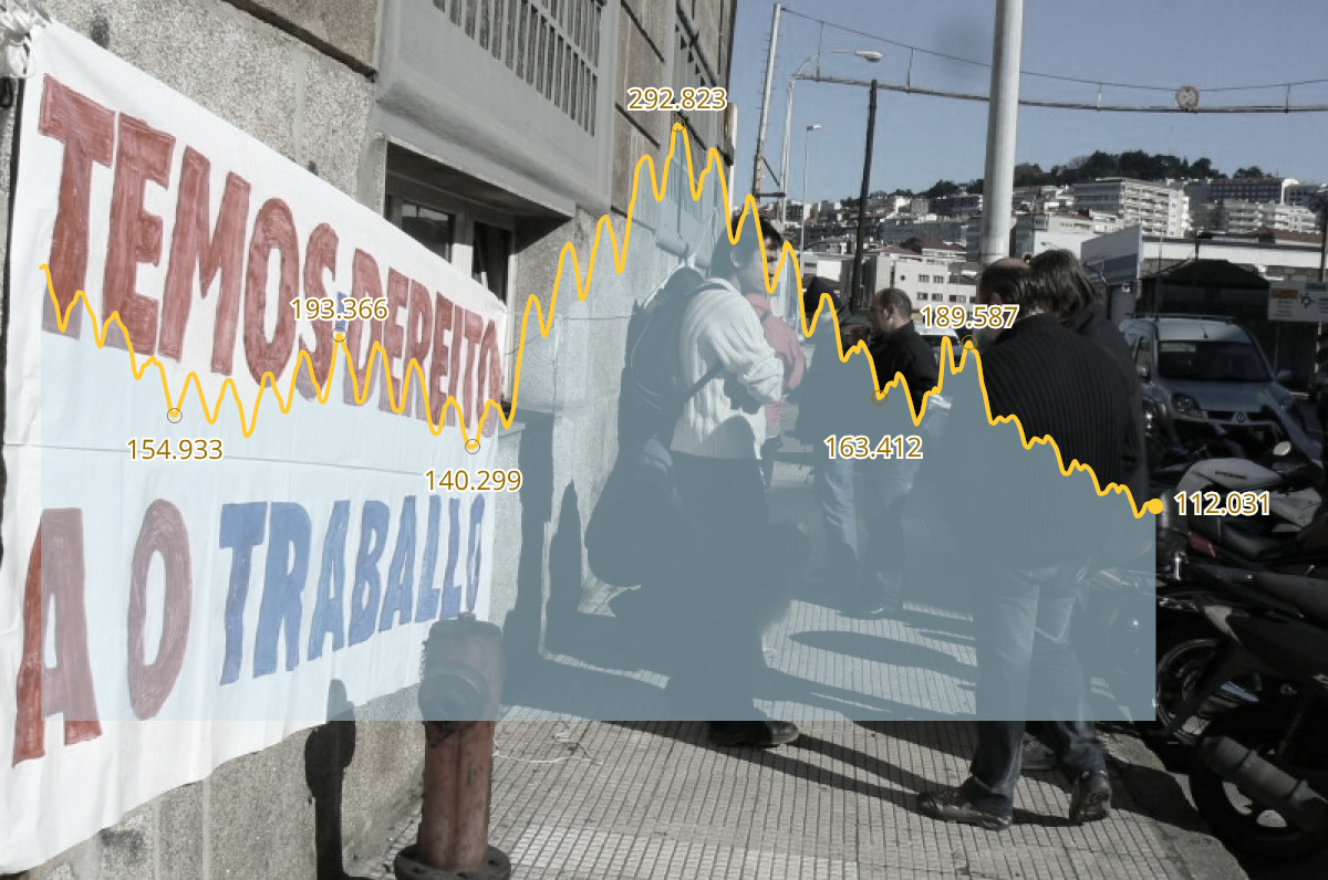 O desemprego incrementouse en 459 persoas en decembro en Galicia. Unha pequena suba que, con todo, contrasta co descenso experimentado no conxunto do Estado (-16.291). A cifra total de persoas inscritas nas oficinas dos servizos públicos de emprego pechou o ano en 112.031, cunha caída de 6.807 dende o 31 de decembro de 2024.