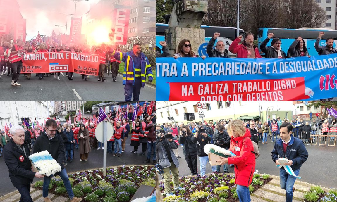 Desde a CIG, que celebra a principal manifestación en Ferrol á tardiña, ao igual que no resto de cidades e vilas onde ten convocadas marchas. O seu secretario xeral, Paulo Carril, reclamou durante a ofrenda floral "a vixencia e actualidade" de todas as "loitas pola liberdade, por salarios e condicións laborais xustas e por defender a negociación colectiva en Galiza."