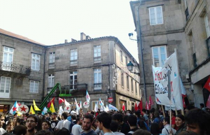 #folgaestudantil Milleiros de estudantes e membros da comunidade universitaria manifestáronse convocados pola Plataforma Galega en Defensa do Ensino Público. Á convocatoria de Santiago no Toural uníronse tamén os escasos participantes na convocatoria da Plataforma en Defensa do Ensino Público da Alameda. Imaxe de @gritorojo