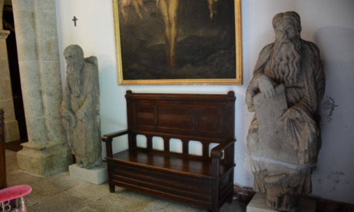 As esculturas do Mestre Mateo espoliadas polos Franco volverán a Santiago o 11 de decembro e exporanse no Museo do Pobo Galego. A alcaldesa da capital galega, Goretti Sanmartín, sinala nun vídeo divulgado este xoves que o 20N, aniversario da morte do ditador, é "un día magnífico" para anunciar o retorno dende Meirás das pezas que o Concello de Santiago conseguiu recuperar tras un longo litixio xudicial contra os herdeiros do xeneral golpista. Na imaxe, as esculturas procedentes da composición orixinal do Pórtico da Gloria, no Pazo de Meirás.