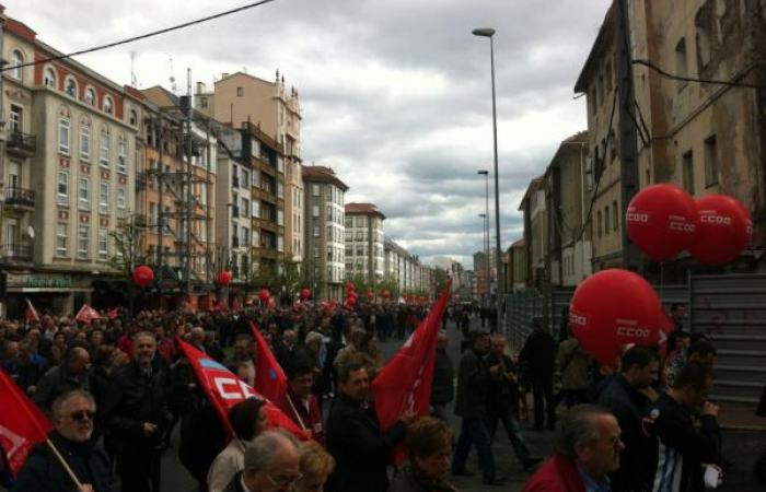 Tamén en Compostela, na marcha de CC.OO. e UGT (via @godial)