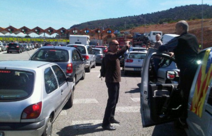 O éxito de #novullpagar na convocatoria masiva de hoxe colapsa as peaxes catalás. Nalgunhas autoestradas os traballadores abriron as barreiras sen apuntar as matrículas, mentres que noutros a garda civil realizou identificacións. Sorprendeu, precisamente, a presenza da garda civil ou da policía nacional, sen competencias en Catalunya.