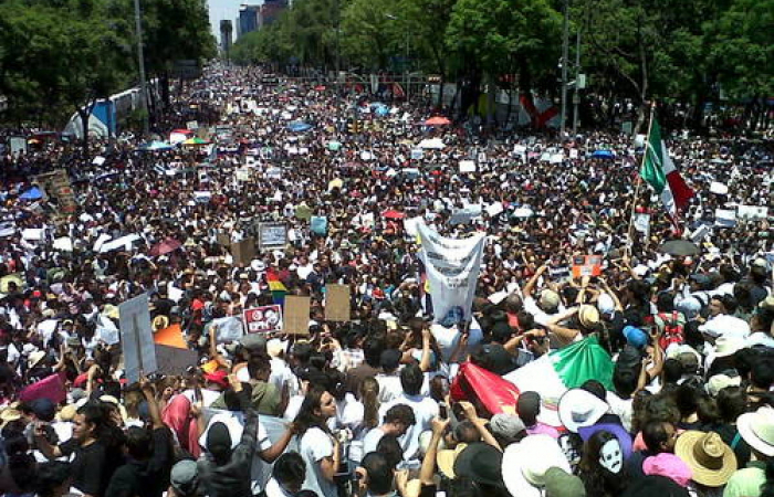 Milleiros de mexicanos maniféstanse contra o candidato do PRI á presidencia, Enrique Peña Nieto, e a manipulación mediática ao seu favor.
