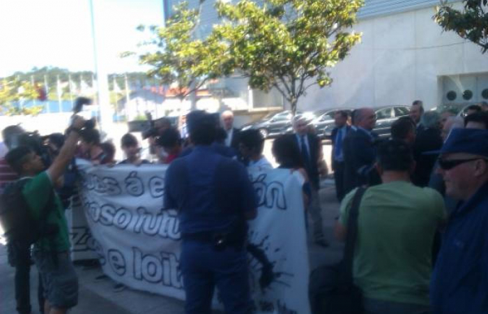 Altercados na presentación da ampliación do Hospital de Ourense entre a Policía e os indignados que abordaron a Feijóo. Imaxe de @ptaboadap