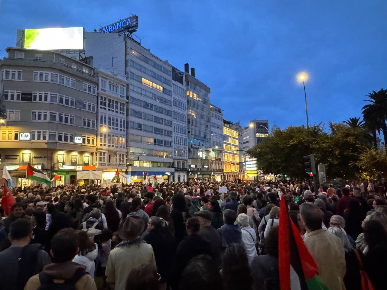 Na mañá deste xoves xa había convocadas desde hai días protestas estudantís contra o xenocidio da poboación palestina, pero a detención ilegal por Israel da flotilla que pretendía achegar sequera de xeito simbólico axuda humanitaria a Gaza sacou na tarde e noite a milleiros de persoas ás rúas de toda Galicia. Foron concentracións que tornaron masivas e que nalgún caso, como na Coruña, derivaron en manifestacións improvisadas.