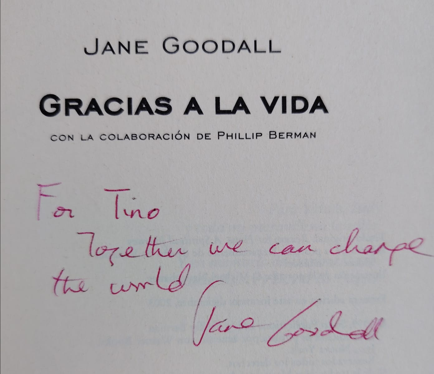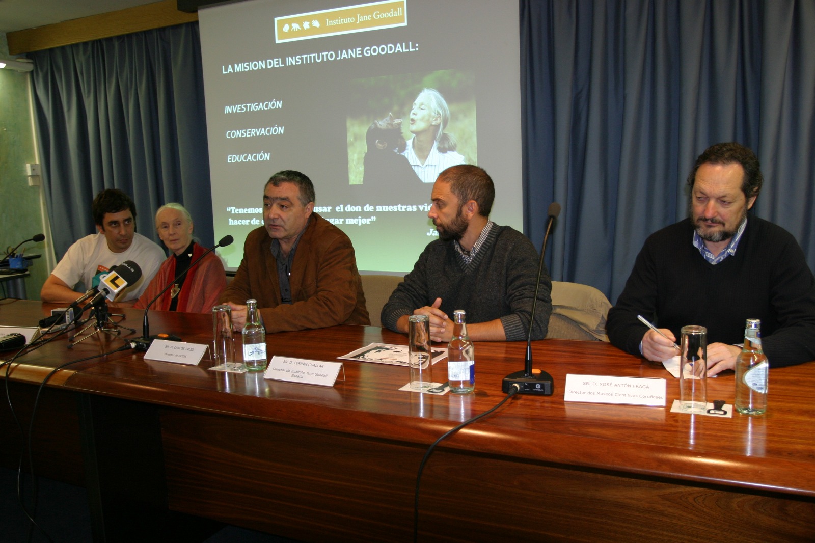 Ferran explicou que Jane percorría o mundo divulgando as actividades do Instituto Goodall e que cobraba pola súa intervención unha cantidade que destinaba aos proxectos da entidade. Na conversa xurdiu a posibilidade dun custe máis reducido para unha visita ao CEIDA. Acadouse unha apreciable rebaixa pero aínda así constituía unha cantidade excesiva para os orzamentos da institución situada en Oleiros. Nese proceso Carlos falou comigo –que nese momento dirixía os Museos Científicos Coruñeses– e acordamos compartir o gasto da visita de Jane Godall, que incluiría, xa que logo, unha visita á Domus e unha conferencia na cidade herculina.