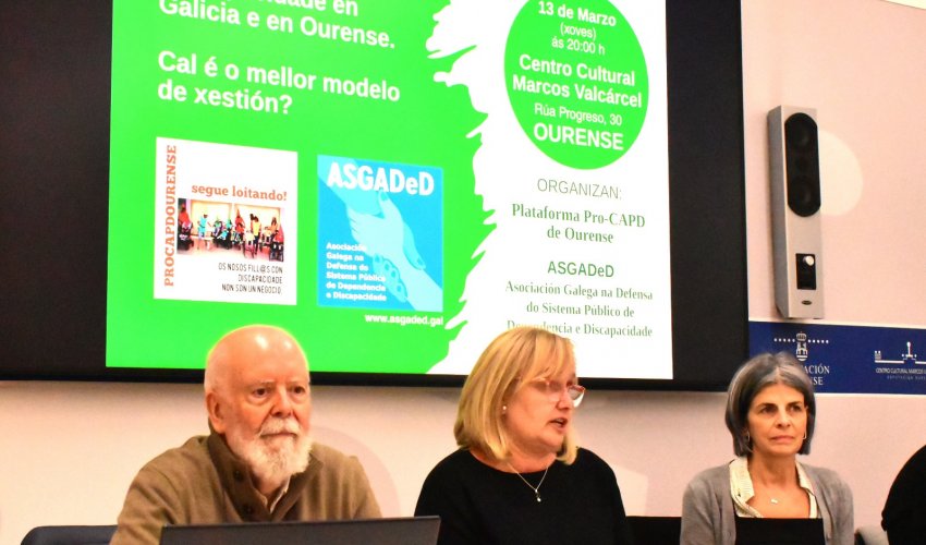 A Plataforma Pro-CAPD de Ourense e ASGADeD defendemos uns centros de dependencia e discapacidade 100% públicos, é dicir que tanto a súa financiación como a súa titularidade, xestión e provisión sexan plenamente públicos