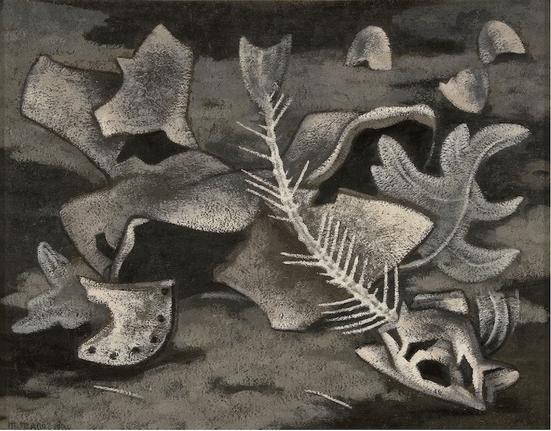 Hai pouco que pechou a mostra temporal 1924. Otros surrealismos nas salas da Fundación Mapfre Madrid. Alí o traballo de curadora de Estrella de Diego percíbese moi ben ao pasar polas salas e ir constatando a presenza de tantas e tantas creadoras que non é habitual atopar nestas celebracións internacionais. Estrella de Diego fai que Maruja Mallo sexa a artista que encabece a derradeira seccións de 1924 Otros Surrealismos, titulada “Piedras, árboles y otras criaturas”. Nesa sección varias obras de Mallo (dos anos 30) exhiben a súa querenza por esqueletos e tantos outros restos orgánicos.