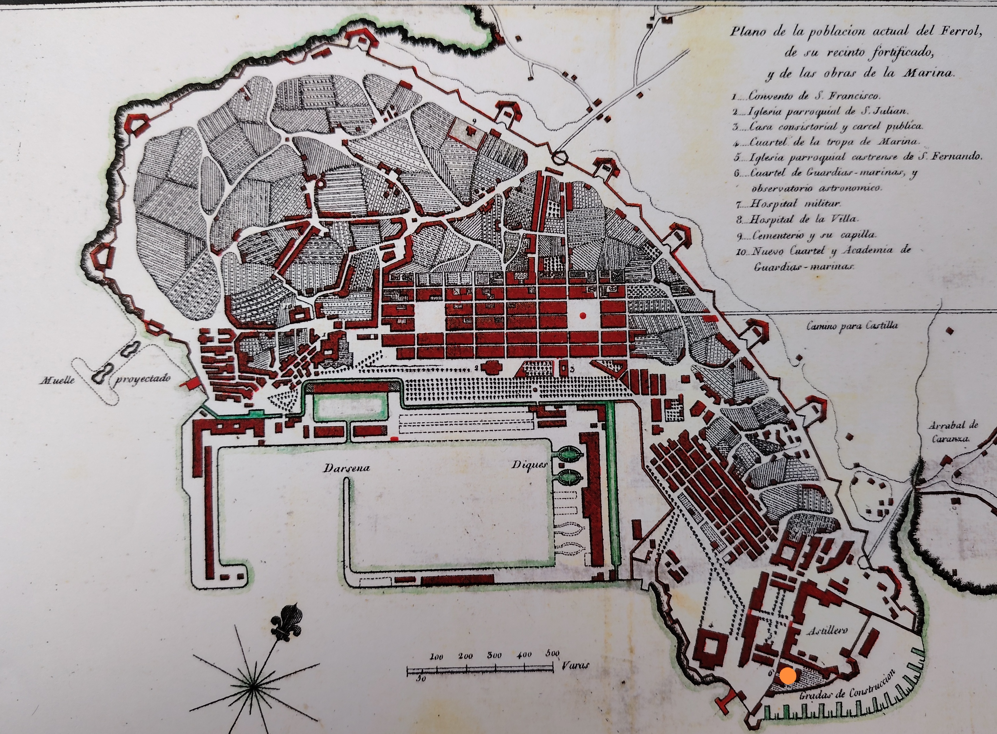 Un dos planos que acompañaba a esa obra (e que reproducimos) sitúa o lugar, que –loxicamente– coincide coa descrición antedita