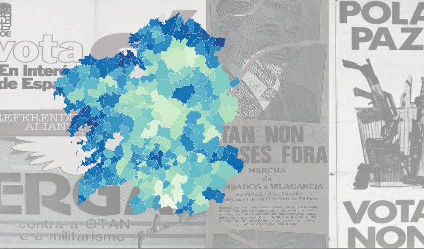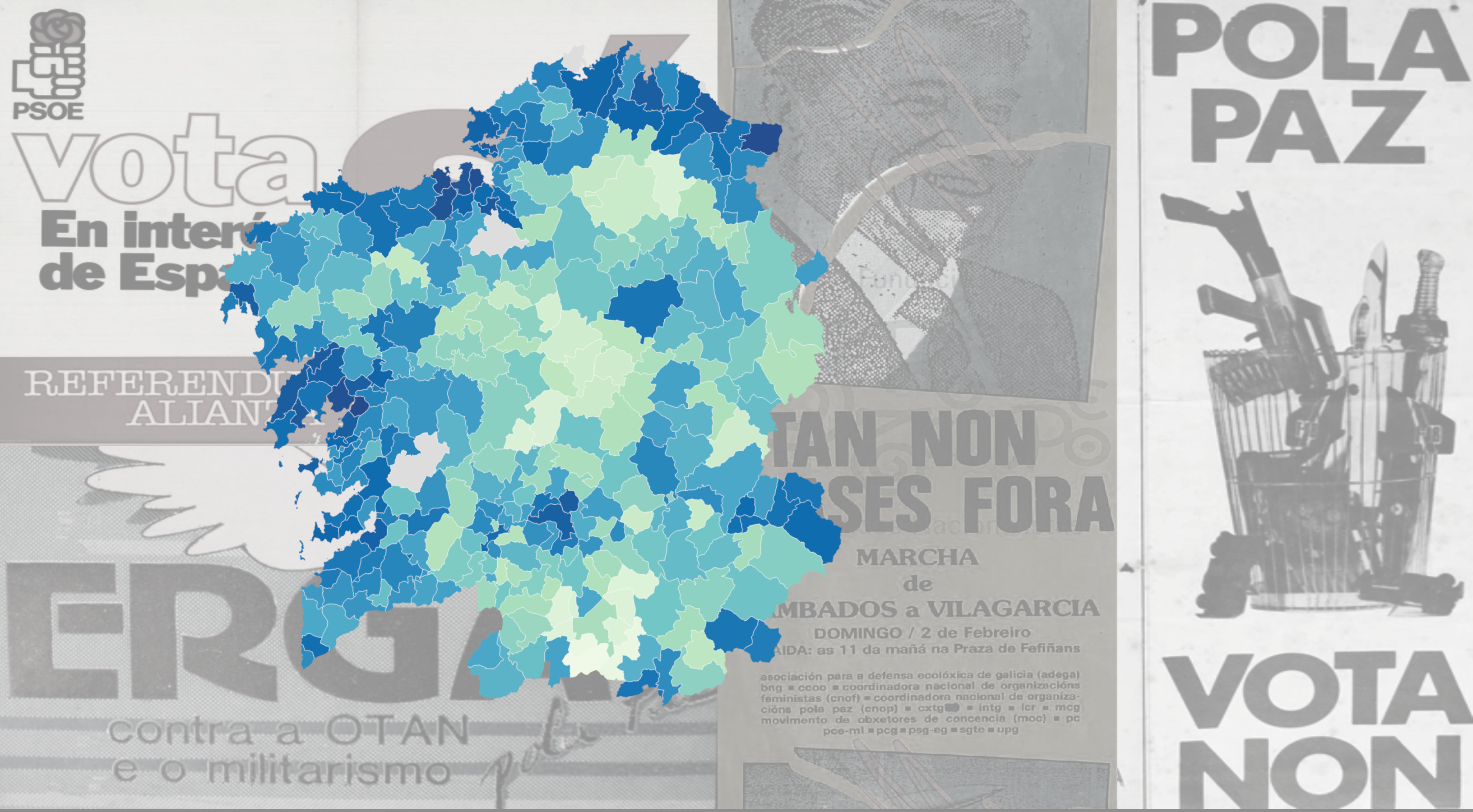 Finalmente, apenas o 21% do censo electoral apoiou en Galicia a permanencia na OTAN e aínda que vitoria do si foi clara (case vinte puntos de diferenza sobre o non) o non impúxose en 38 concellos, encabezados por Fene (máis do 60% de votos negativos). Estas localidades que dixeron non á OTAN son unha estraña mestura de concellos que tradicionalmente votaron á esquerda e ao nacionalismo (coma o propio Fene, As Pontes e varios lugares do sur da provincia de Pontevedra) e zonas rurais de maioría conservadora, tanto na Terra Cha (na Vilalba de Manuel Fraga gañou o non), coma na Limia ou no centro xeográfico de Galicia (o non impúxose en Lalín, Arzúa, Melide, Palas de Rei ou Monterroso). En xeral, aínda que a mobilización polo non foi liderada pola esquerda, a maior parte destes concellos estaban gobernados por Coalición Popular.