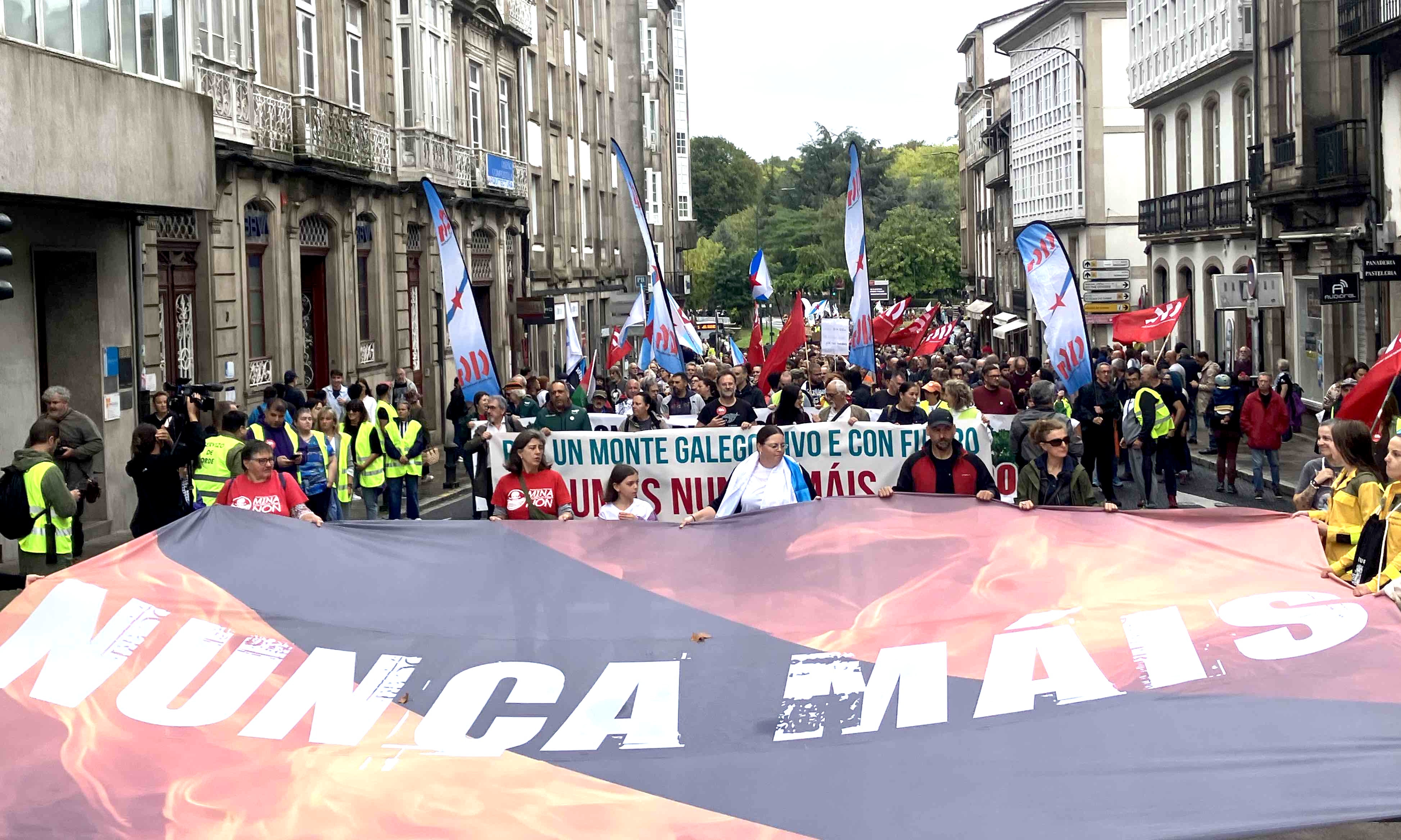 A vaga de incendios deste mes de agosto queimou máis de cen mil hectáreas fundamentalmente na provincia de Ourense, seguida da de Lugo. Unha crise ambiental que este xoves levou o colectivo veciñal Terra en Pé a convocar unha manifestación en Valdeorras, unha das zonas máis afectadas polo lume, e que este domingo fixo que Santiago acollese outra mobilización convocada pola plataforma Por un monte galego con futuro, conformada por medio cento de asociacións ou colectivos como Adega, Amigos da Terra, CIG, Sindicato Labrego Galego ou comunidades de montes.